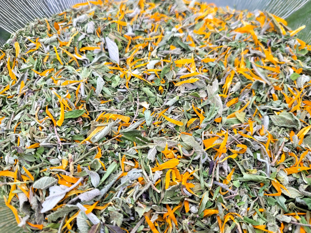Mélange d'aromates: raw ram, romarin, sauge, thym, souci