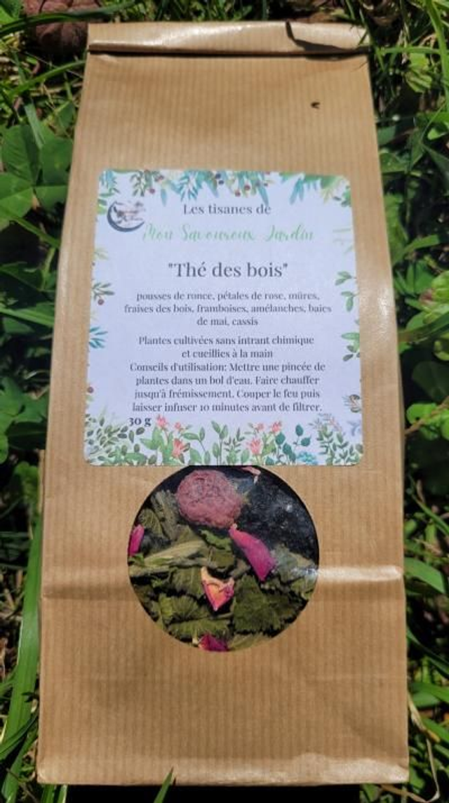 Tisane composée de pousses de ronce et pétales de rose pour le plaisir du goût du thé sans la théine.